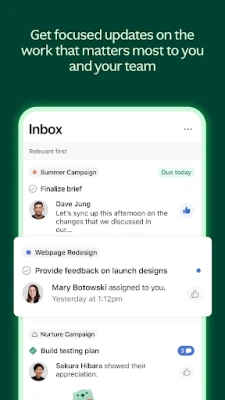 Keep collaboration going, wherever you are. Communicate with your teammates by liking, commenting, or attaching files directly to tasks. And get automatic updates about the projects and tasks that matter to you delivered directly to your Inbox.