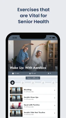 Chair aerobics: This is a great low-impact workout that can be done while seated in a chair. It's an excellent option for seniors who may have limited mobility or balance issues. Chair aerobics usually include simple movements such as arm raises, leg lifts, and ankle rotations, which can help improve circulation, flexibility, and balance.