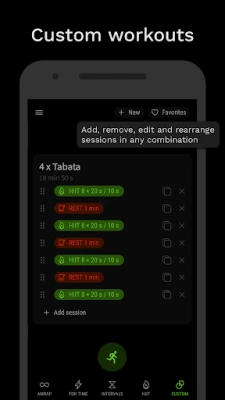 β Custom workouts: add, remove, edit and rearrange the 4 workout types in any combination