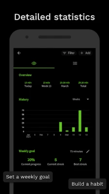 Goodtime Training comes with a configurable Weekly Goal of active time(default is 75 minutes) and you can use the Workout Reminders to build a habit.