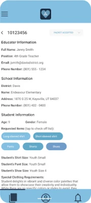 How does it work? Educators see a child in need of clothing in their classroom or school, and submits a KIND Fund Request with that lists the child’s needs, sizes, preferences, etc. The request is then paired with a volunteer. Along with the list of clothing needs, the volunteer is given a gift card for $150 to shop. Once the shopping is completed, the volunteer delivers the clothing to the school so the educator can give the clothing to the student.