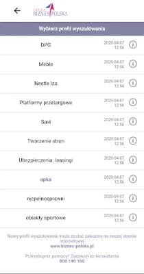 Aplikacja połączona jest z kontem, które Użytkownik posiada w serwisie www.biznes-polska.pl i pobiera na urządzenie nowe ogłoszenia, które zostały dodane do serwisu przetargowego. Ogłoszenia selekcjonowane są w oparciu o profile zdefiniowane na koncie Użytkownika, utworzonym w serwisie www.biznes-polska.pl. Dzięki temu Użytkownik otrzymuje ogłoszenia o toczących się postępowaniach wg własnych preferencji.